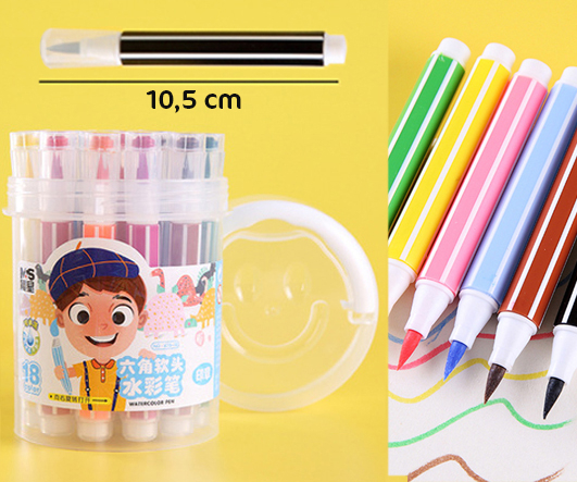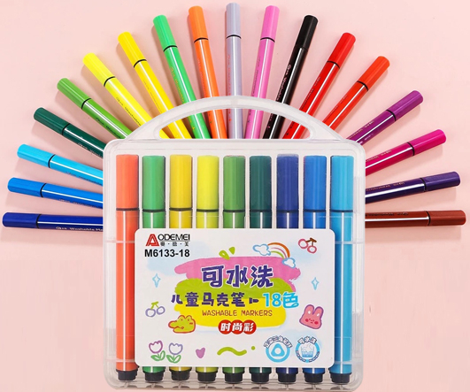 Фломастеры 18 цв. DI-334/DC-211 Смываемые, 2 мм, пулевидный, 3хгранный корпус, в пластиковом футляре M6133-18 (1/24/96)