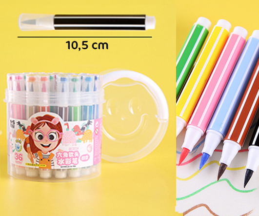 Фломастеры 36 цв. DA-313 JUMBO наконечник кисть, 6гр корпус, смываемые, в пластиковом тубусе №668 (1/8/48)