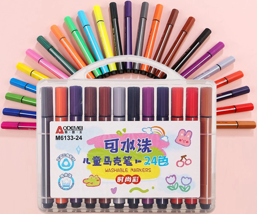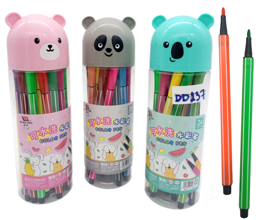 Фломастеры 24 цв. DI-335/DC-212 Смываемые, 2 мм, пулевидный, 3хгранный корпус, в пластиковом футляре M6133-24 (1/12/72)