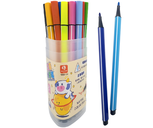 Фломастеры 24 цв. DD-235 Полосатый трехгранный корпус, смываемые, в пластиковом футляре №1998-24 (1/18/72)
