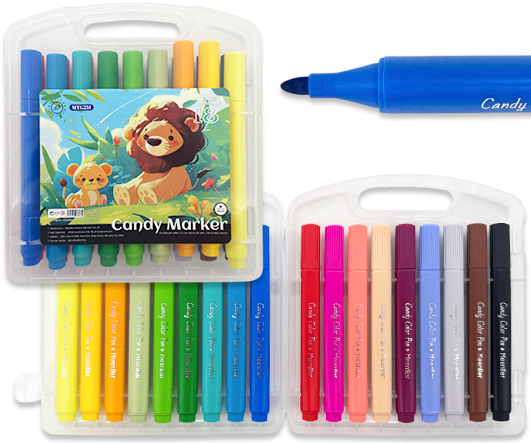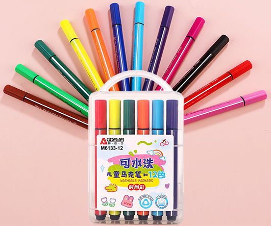 Фломастеры 12 цв. DI-333 Смываемые, 2 мм, пулевидный, 3хгранный корпус, в пластиковом футляре M6133-12 (1/24/144)