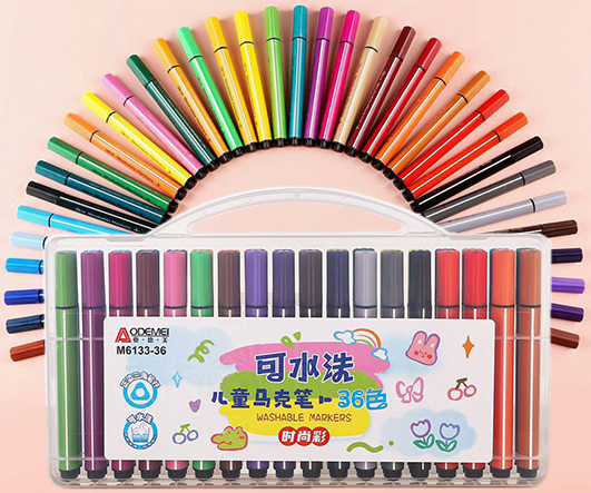 Фломастеры 36 цв. DI-336 Смываемые, 2 мм, пулевидный, 3хгранный корпус, в пластиковом футляре M6133-36 (1/12/48)