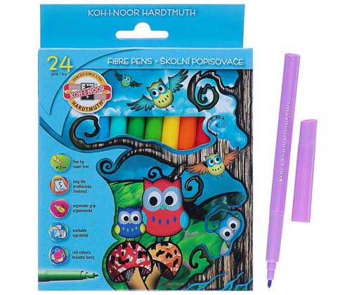 Фломастеры 24 цв. KOH-I-NOOR "Owls" трехгранные, смываемые 771012BD02KS в к/уп. (1/12)