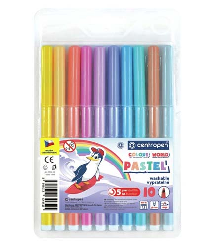 Фломастеры 10 цв. Centropen "Colour World. Pastel" трехгранные, смываемые, блистер 7550 1087 (1/24)