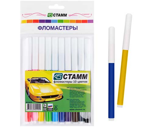 Фломастеры 10 цв. Стамм "Автомобили" ФА403 смываемые, пакет, европодвес (2/50)
