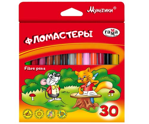 Фломастеры 30 цв. ГАММА "Мультики" смываемые, картон. упаковка, европодвес 180319_08 (1/6/12)