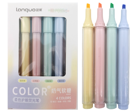 Маркер выделитель 4 цв. DH-28 "С глиттером" 1-4мм, скошенный, круглый нескользящий корпус, в уп ПВХ SC2260-1 (1/75/225)