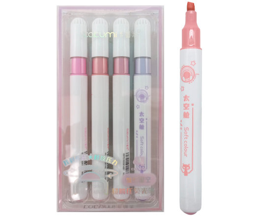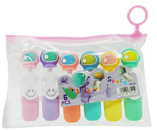 Маркер выделитель 6 цв. CZ-23 "Космонавт" 1-4мм, скошенный, мини 80мм, в упаковке ПВХ на пластиковой молнии MD-221 (2/24/288)