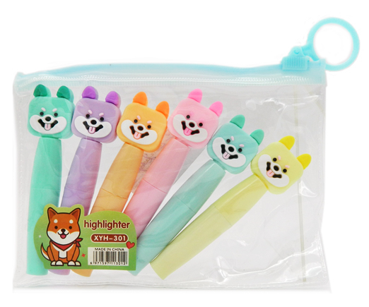 Маркер выделитель 6 цв. CZ-24 "Корги" 1-3мм, скошенный, мини 80мм, в упаковке ПВХ на пластиковой молнии XYH-301 (2/24/288)