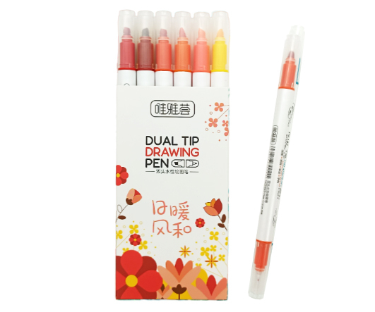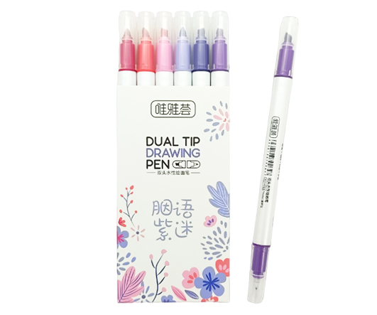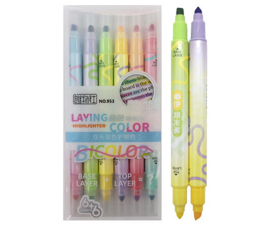 Маркер выделитель 12 цв. 6шт. DD-76 "Двухцветные" (тонкий/скошенный), 2/4мм, круглый корпус, уп ПВХ №953 (1/24/288)