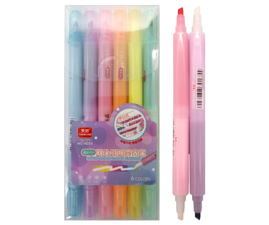 Маркер выделитель 6 цв. DD-79 "Стирающийся" двусторонний 1-4мм, скошенный, уп ПВХ №HD24 (1/12/288)