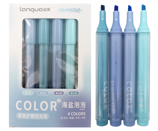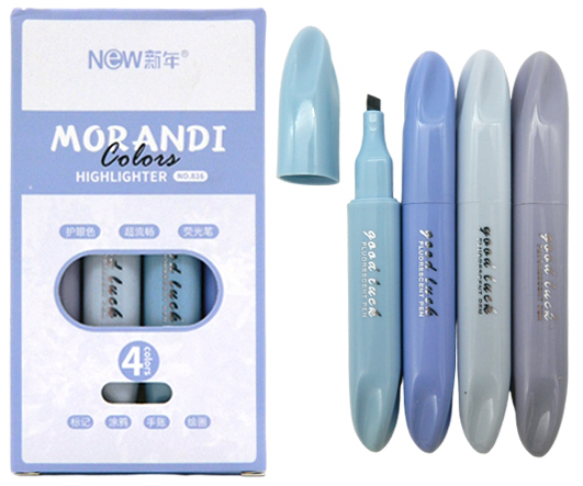 Маркер выделитель 4 цв. DF-63 "Morandi" Голубые цвета, 1-5мм, скошенный, фигурная форма, в к/к №816 (1/216/432)