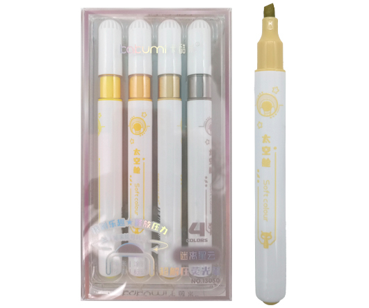 Маркер выделитель 4 цв. DG-10 1-4мм, скошенный, белый плоский корпус, в упаковке ПВХ HL-72 (2/768)