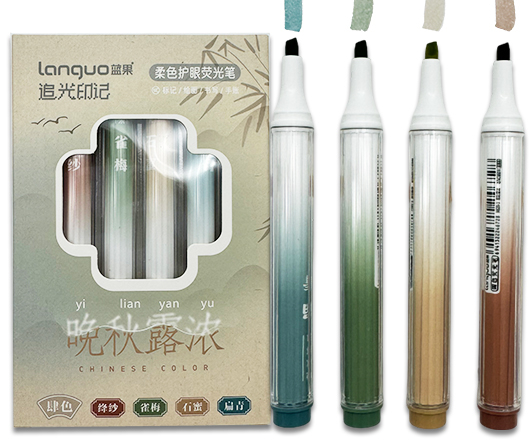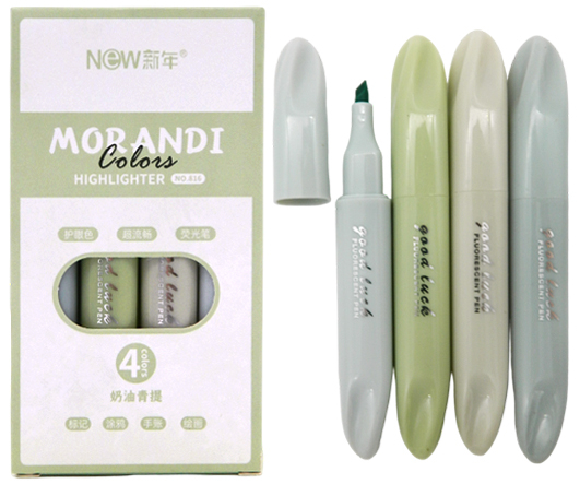 Маркер выделитель 4 цв. DF-64 "Morandi" Зеленые цвета, 1-5мм, скошенный, фигурная форма, в к/к №816 (1/216/432)