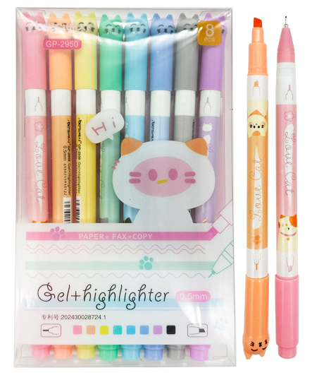 Маркер выделитель 8 цв. DF-60 Двусторонний "2 в 1" (скошенный+ гел.ручка) 1-3мм/0.5мм, цветной корпус с фигурным колпачком, в уп ПВХ GP-2950 (1/20/320)