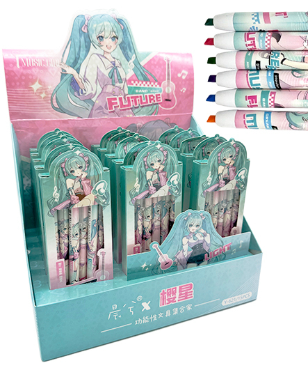 Маркер выделитель 6 цв. DG-35 "Аниме" автоматический, 1-3мм, скошенный, круглый корпус с рисунком, в к/кор Y-621 (1/15/360)