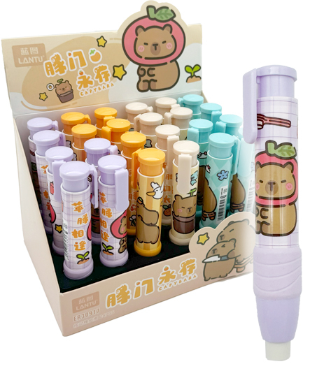 Ластик DL-405/DG-12 "Капибара" выдвижной, 110*20мм в футляре, ассорти, в к/кор ER30917 (24/576)