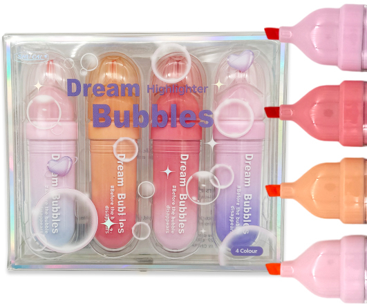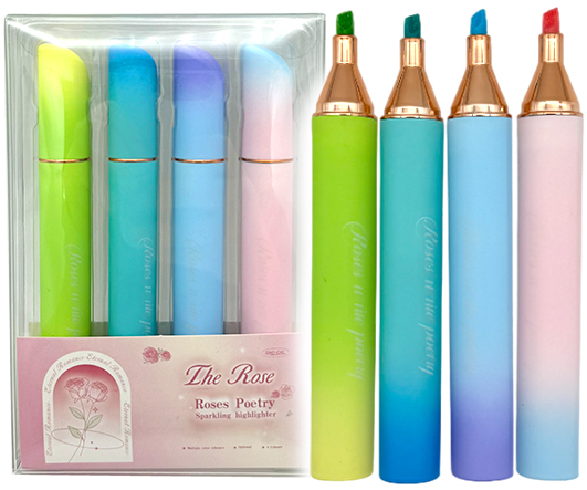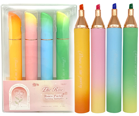Маркер выделитель 4 цв. DH-27 "С глиттером" 1-4мм, скошенный, круглый нескользящий корпус, в уп ПВХ SC2260-1 (1/75/225)