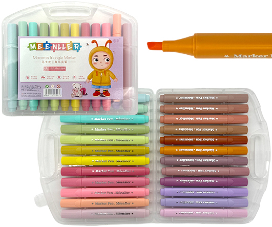 Маркер выделитель 24 цв. DG-70 "Macaron" 1-4мм, скошенный, трехгранный корпус, в пластиковом футляре M2101-24 (1/20/80)
