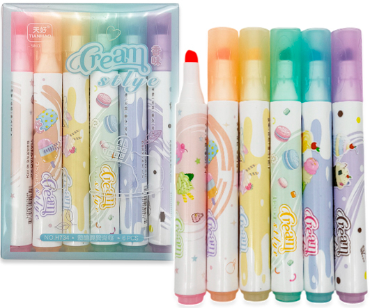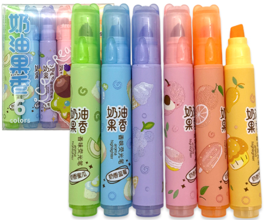 Маркер выделитель 6 цв. DH-90 Ароматизированные, 1-4мм, скошенный, круглый корпус, со штампом, в уп. ПВХ №712 (2/24/288)