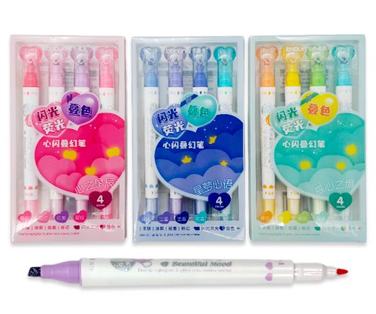Маркер выделитель 4 цв. DH-28 "С глиттером" 1-4мм, скошенный, круглый нескользящий корпус, в уп ПВХ SC2260-1 (1/75/225)