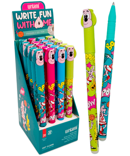 Ручка "Пиши стирай" в классическом корпусе. Чернила обесцвечиваются при трении. Достаточно потереть надпись резинкой, расположенной на конце ручки, и надпись исчезнет. При корректировке надписи бумага остается невредимой, можно писать поверх стертого.