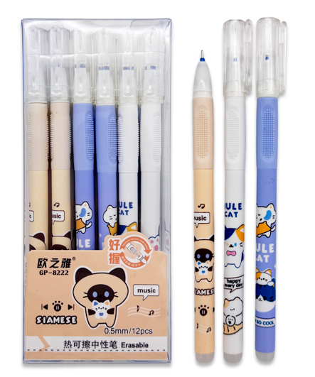 Ручка "Пиши стирай" в классическом корпусе. Чернила обесцвечиваются при трении. Достаточно потереть надпись резинкой, расположенной на конце ручки, и надпись исчезнет. При корректировке надписи бумага остается невредимой, можно писать поверх стертого.