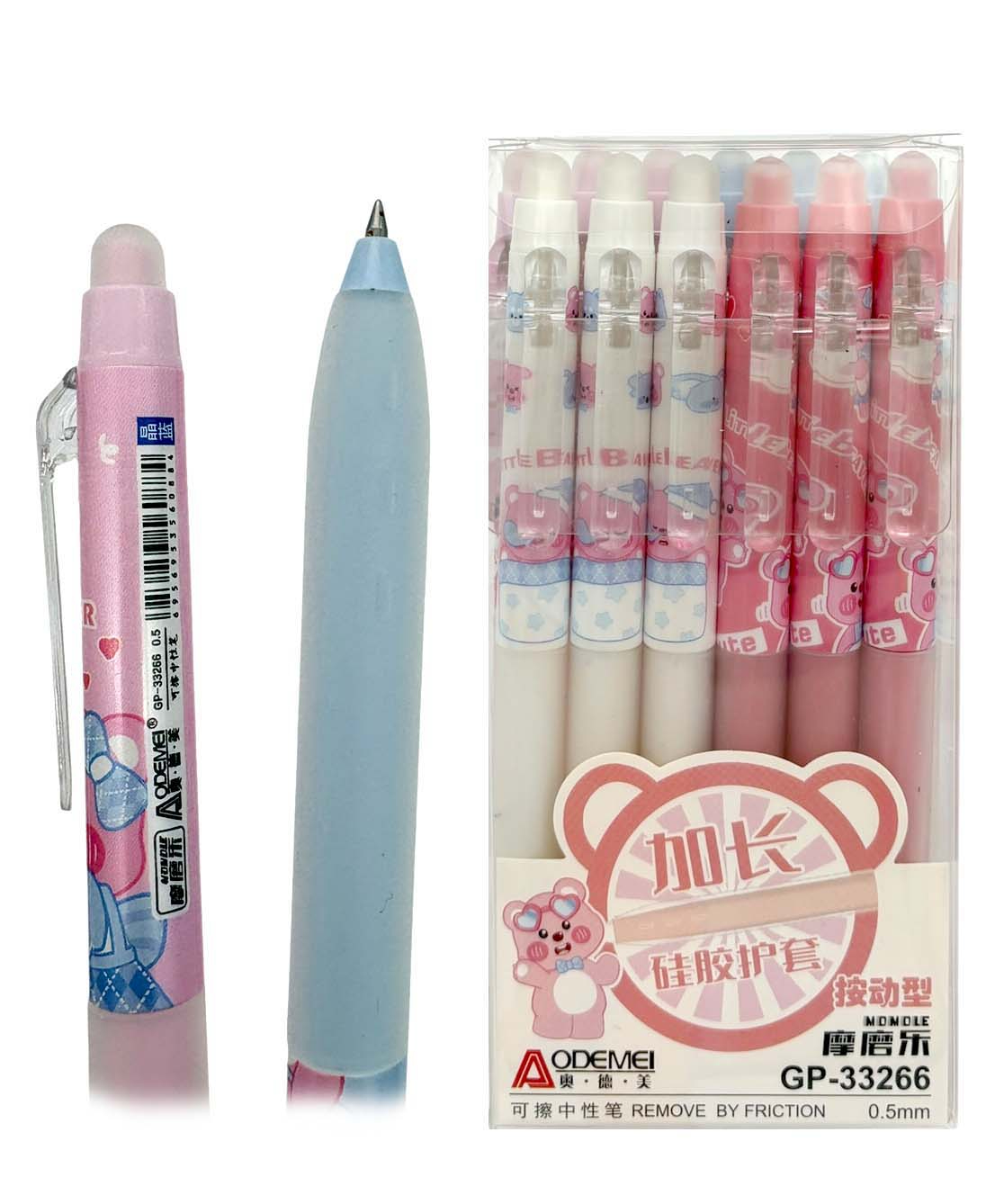 Ручка "Пиши стирай" в пластиковом красочном корпусе с фигурным колпачком. Чернила обесцвечиваются при трении. Достаточно потереть надпись резинкой, расположенной на конце ручки, и надпись исчезнет. При корректировке надписи бумага остается невредимой, мож