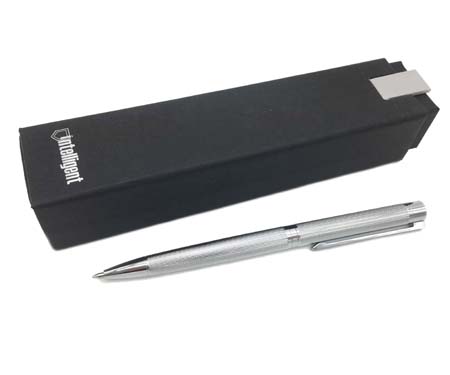 Ручка в футляре BV-192 INTELLIGENT (син) 0.7мм Серебряный матовый корпус с рифлением, в пластик футляре (3/25/500)