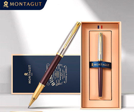 Ручка в футляре TJ-14 Montagut (син) 0.5мм роллер, Серебро/коричневая, металлический корпус, в к/кор M307 (1/10)