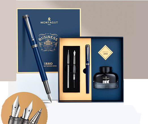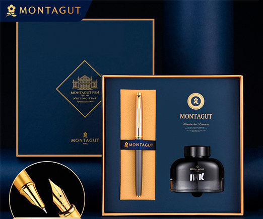 Ручка в футляре TJ-10 Montagut 0.5мм перьевая, Синяя, металлический корпус, поршневая + чернила 30мл, сменное перо, сменная ручка роллер с стержнем, в к/кор M308 (1/20)