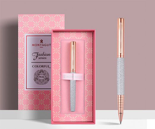 Ручка в футляре DA-186A INTELLIGENT (син) 0,5мм, автомат, серебро/розовый, металлический корпус, к/коробке (1/200)