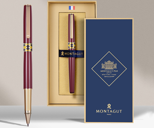 Ручка в футляре TJ-44 Montagut (син) 0.5мм роллер, Темно-красная с золотом и рисунком, металлический корпус, в к/к М302 (1/20)