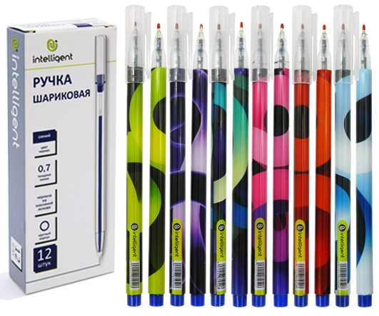 Ручка масляная INTELLIGENT DO-475 "Цитаты" (син) 0,7мм, игольчатый стержень, круглый корпус с рисунком, ассорти, в к/к (12/2304)