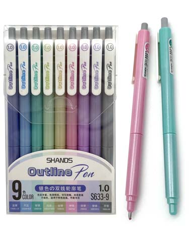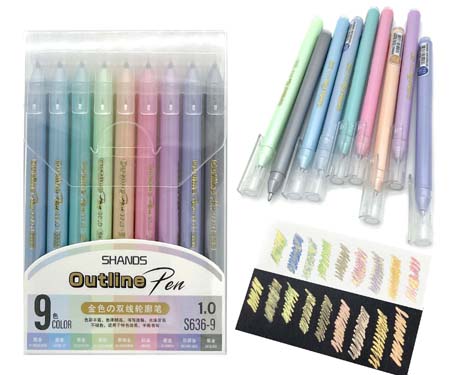 Ручки гелевые набор- 9 цв. CF-53 "Outline" SHANDS (авт) 1.0мм МЕТАЛЛИК S633-9 в упаковке ПВХ (1/16/192)