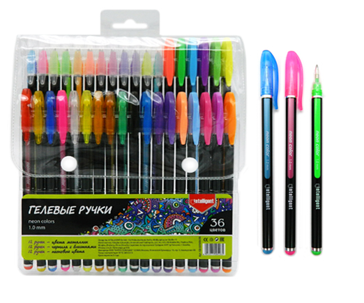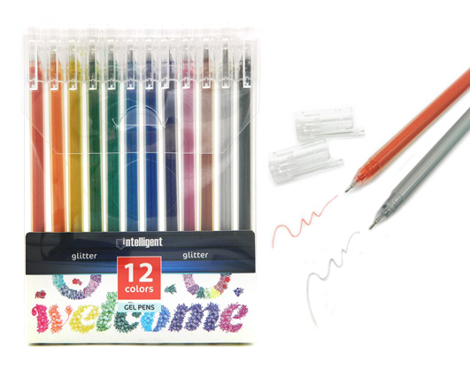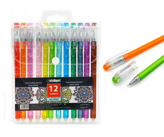 Ручки гелевые набор-12 цв. CD-36 INTELLIGENT 1мм по черной и белой бумаге, в упак ПВХ (2/12/144)