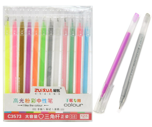 Ручки гелевые набор-12 цв. CR-31 Zuixua 0.6мм, 3гр, игольчатый стержень, в упаковке ПВХ C3573 (2/12/192)