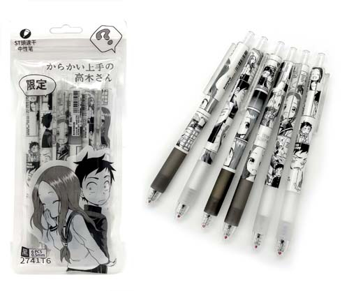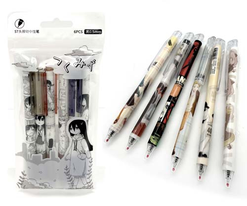Ручки гелевые набор- 6 шт. CW-35 "Девочка из комикса" (черн) 0,5мм авт., игольчатый стержень, с грипом, в зип-пакете (1/20/320)