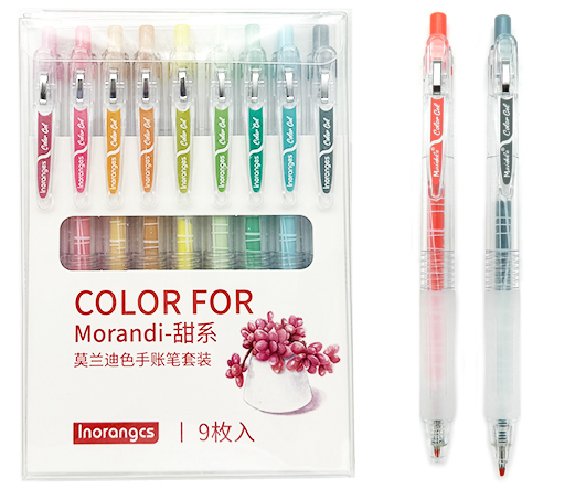 Ручки гелевые набор- 9 цв. CY-216/CL-56/CH-26 "Morandi" 0.6мм, игольчатый стержень, в упаковке пвх №AG936 (2/24/192)