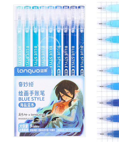 Ручки гелевые набор- 9 цв. DD-312/LG-13 "Синие" 0,6мм, игольчатый стержень, в уп. ПВХ LG-D0233S (1/48/192)