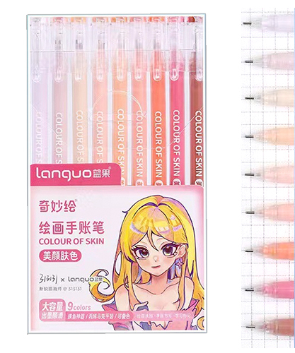 Ручки гелевые набор- 9 цв. DD-313 "Цвет кожи" 0,6мм, игольчатый стержень, в уп. ПВХ LG-D0227S (1/48/192)