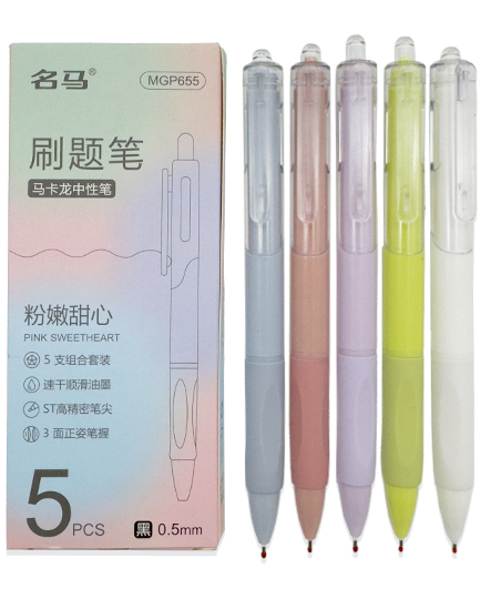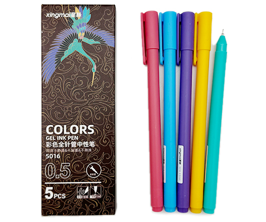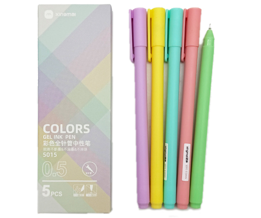 Ручки гелевые набор- 5 цв. DE-460 "Macaron" 0,5мм, игол стерж, круг мат корп, в к/к №5015 (1/27/390)