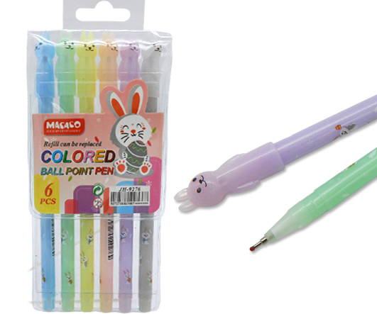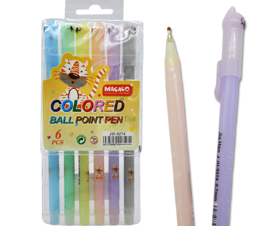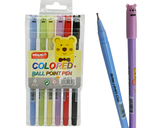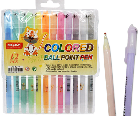 Ручки набор 12 цв. DE-446 0,7мм, цветной круглый корпус, фигурный колпачок, в уп ПВХ на липучке, JH-9274-12 (1/12/240)