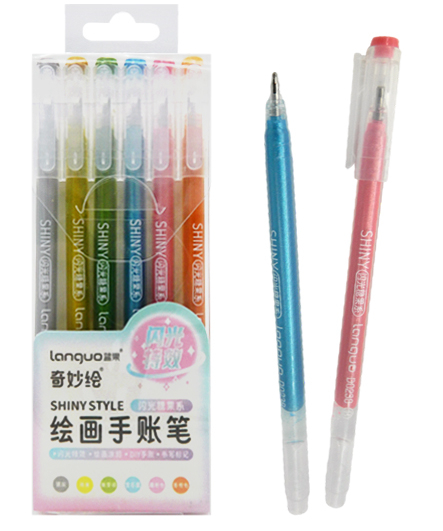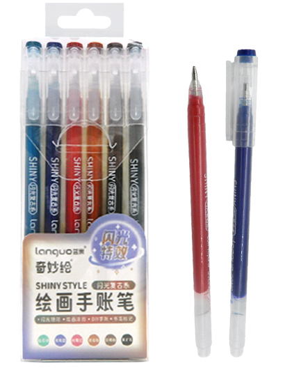 Ручки гелевые набор- 6 цв. DE-71 "Блестящие" 1,0мм, темные оттенки, с глиттером, прозрачный корпус, в уп ПВХ LG-D0239 (1/72/288)