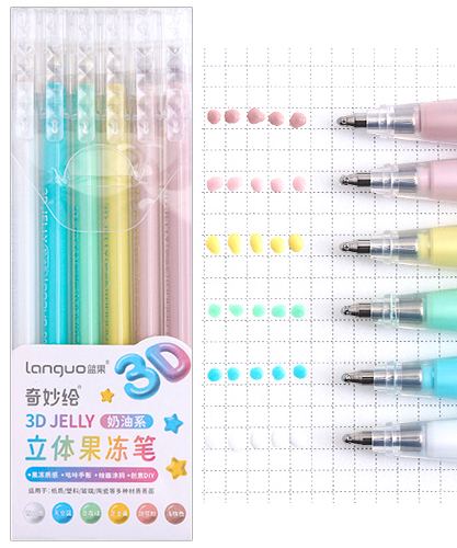 Ручки гелевые набор- 6 цв. DG-337 "Пастельные" 1,0мм, 3D чернила, трехгранный прозрачный корпус, в упаковке ПВХ LG-D0230 (1/72/288)