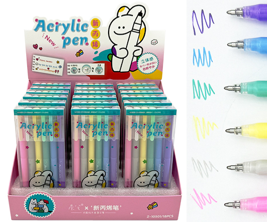Ручки акриловые набор- 6цв. DG-45 "Цветные" 1,0мм, прозрачный круглый корпус, уп ПВХ Z-10501 (1/18/288)
