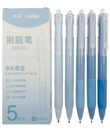 Ручки гелевые набор- 5 шт. DG-113 "Голубые" автоматические, черн 0,5мм, круглый корпус с грипом, цв ассорти, к/к MGP1076 (1/320)
