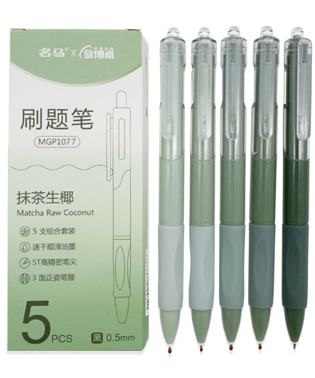 Ручки гелевые набор- 5 шт. DG-114 "Зеленые" автоматические (черный) 0,5мм, круглый корпус с грипом, цвета ассорти, в к/кор MGP1077 (1/320)