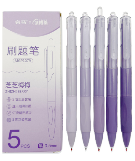 Ручки гелевые набор- 5 шт. DG-115 "Фиолетовые" автоматические (черный) 0,5мм, круглый корпус с грипом, цвета ассорти, в к/кор MGP1079 (1/320)