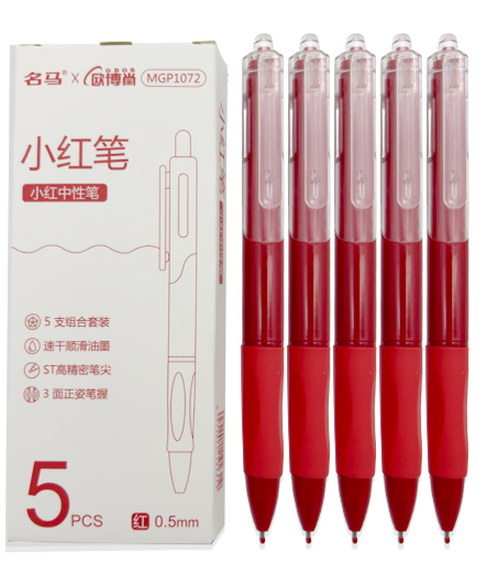 Ручки гелевые набор- 5 шт. DG-120 "Красные" автоматические (красный) 0,5мм, круглый корпус с грипом, в к/кор MGP1072 (1/320)